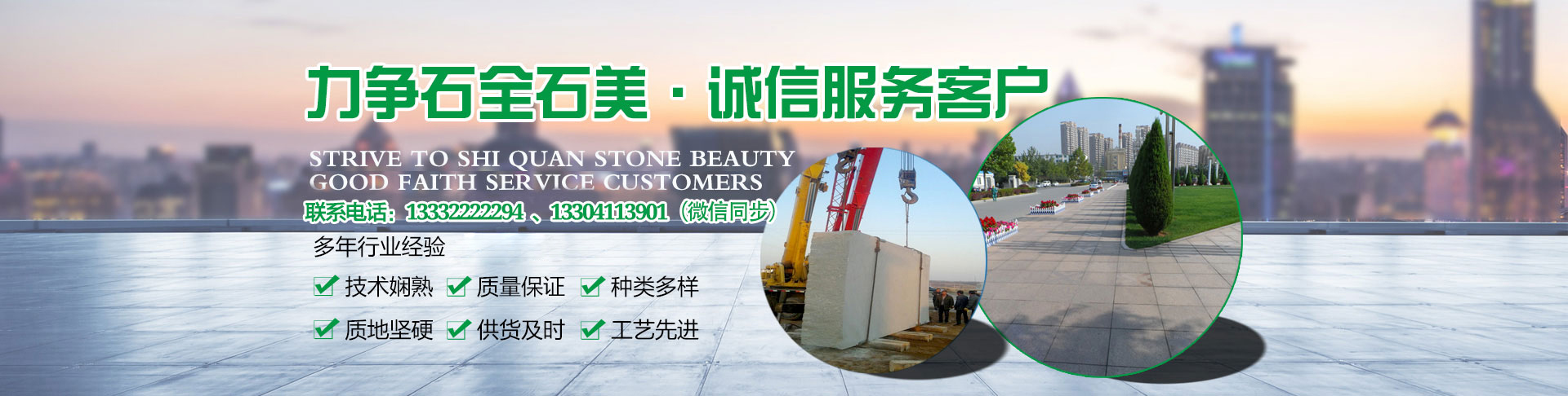 “力爭石全石美,誠信服務客戶”是保林石材的經營宗旨,竭誠為各界朋友提供優質的產品和周到的服務,互利合作,共同發展。